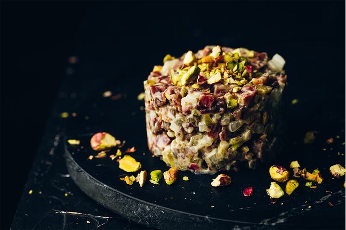 Start the new year off right with salchichón tartare, Ibérico de Bellota style.